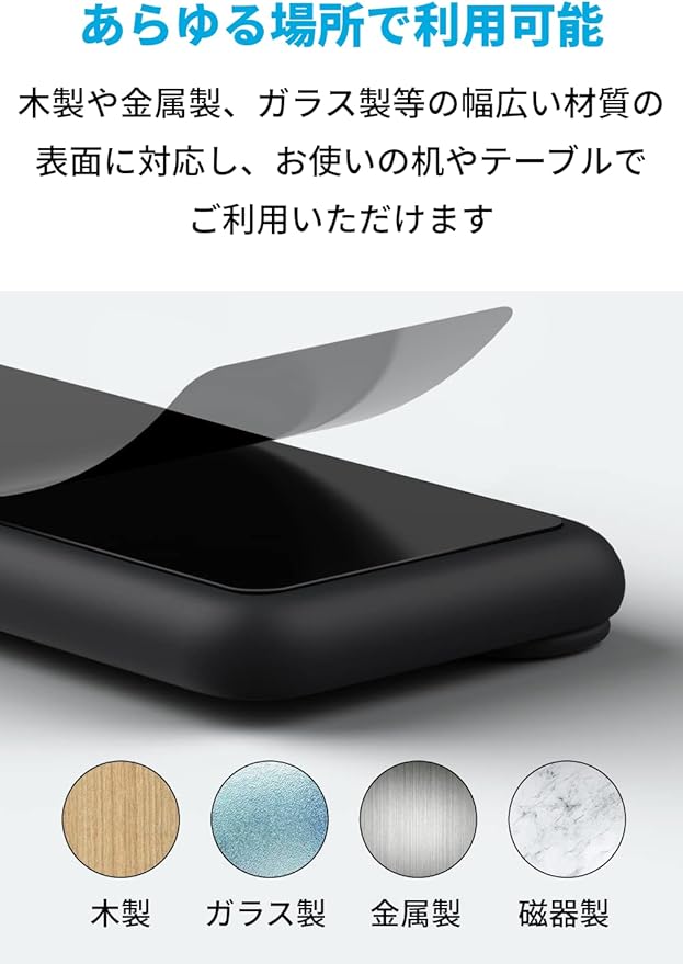広範な素材対応:木製、金属製、ガラス製など、多種多様な素材の表面に適応します。どこでも手軽に設置可能で、デスクやテーブルをすっきりと整理します。