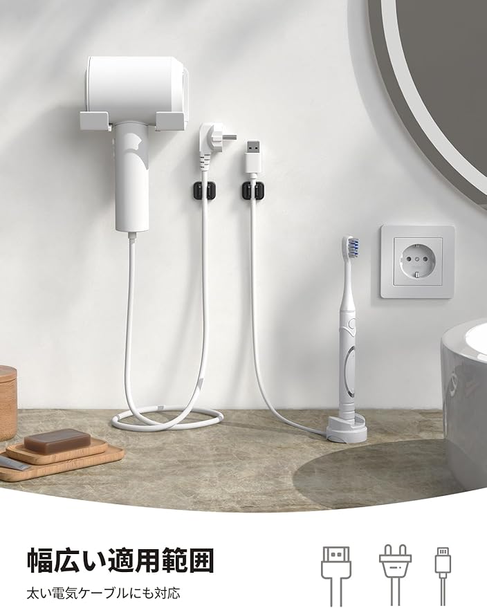 【耐久性】耐衝撃性の高いABS樹脂素材であり、また良い耐熱性や耐低温性に加え、非常に堅固です。長く使っても壊れにくいし、ペンキも落ちにくいです。ケーブルを収納する上に、簡単にケーブルを取付・取り外しをできます。異なる場所でも同じ用法であるので、何処でも設置しやすくて、非常に便利で効率よいアイテムです。