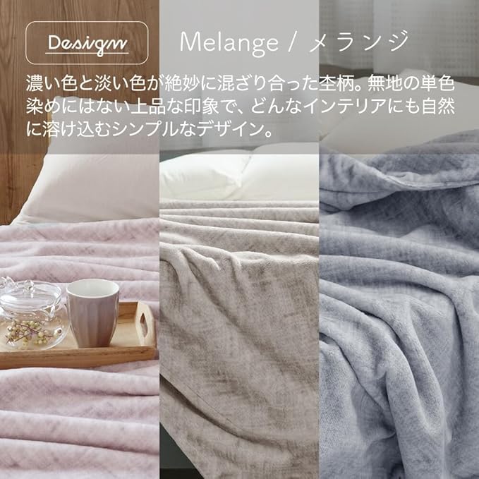 【多彩なカラーバリエーションと選択肢で自分仕様に】メランジ・アッシュピンク/グレージュ/クラウドグレー・ドロップ・アッシュピンク/アッシュブルー・もみの木・ココアブラウン/ダスティブルー の豊富な色展開。さらにシングル・セミダブル・ダブルの3サイズから選べるので、インテリアやベッドサイズに合わせてコーディネートできます。