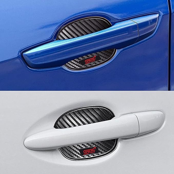 ドアハンドルプロテクター STI スバル 車用 カーボン ドアノブ ガード 傷防止 4枚入り (M, スバル)