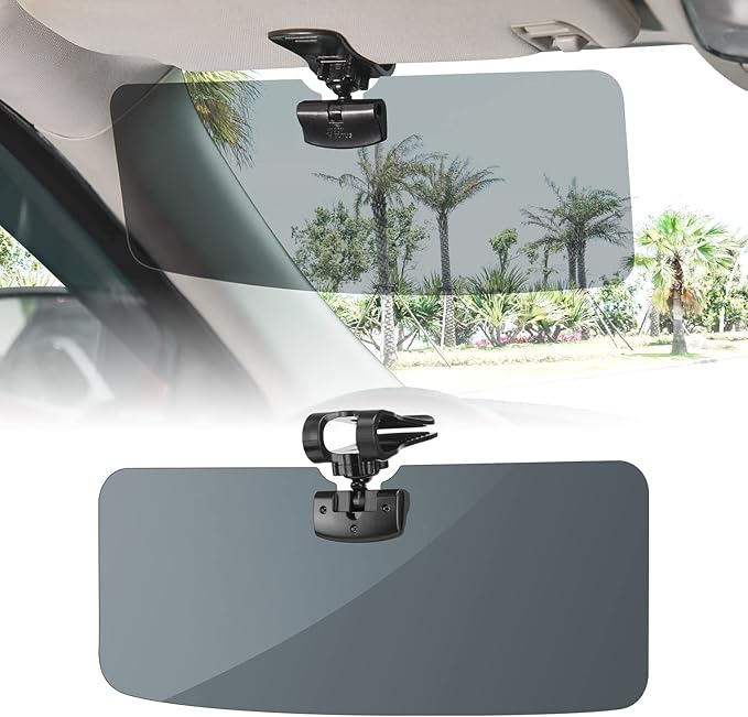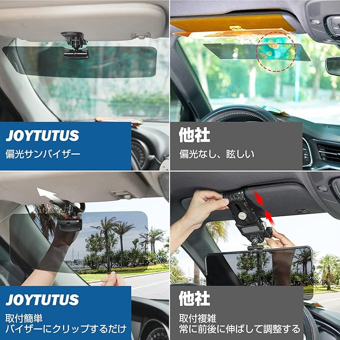 JOYTUTUS サンバイザー 車 SUV汎用 偏光サンバイザー カーサンバイザー フロント 日よけ グレー 左右前後調整可能 360 回転 アンチグレアカーサンバイザ 紫外線 反射光 眩しさ避け 意匠権を取得 日射し 照り返しを簡単カット カー用品