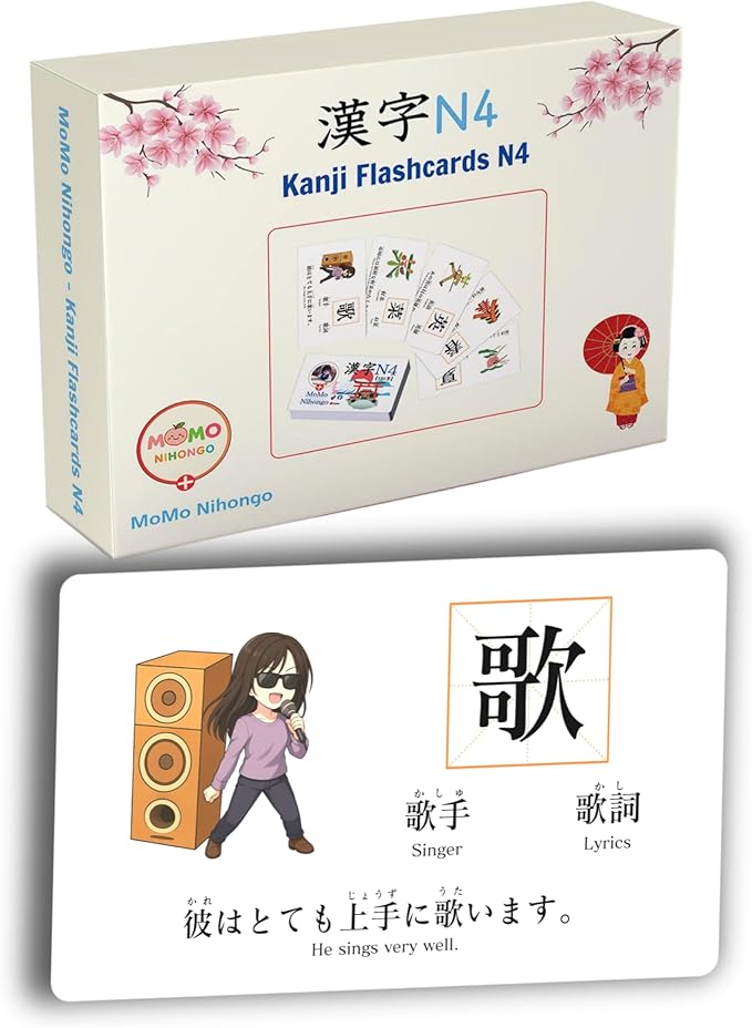 Flashcard Kanji N4: Pelajari semua 181 kanji esensial untuk ujian JLPT N4 dengan flashcard yang penuh warna dan menarik ini.