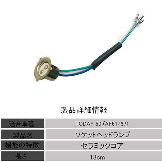 製品名:TODAY50 af61/67専用ヘッドライトソケットカンプ 長さ約18CM