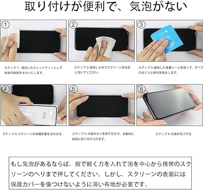 【指紋防止&取付簡単】 Google Pixel8 Pro 用保護フィルムには疎油性コーティングが施されているので、スマホ表面には指紋が付きにくくなり、清潔でクリアな状態を維持できます。保護フィルムの粘着面に高品質な自己吸着層が施されており、保護フィルムを軽くスマホの上に置き、真ん中から周りに押すことで、気泡がなく簡単に取り付けることができます。