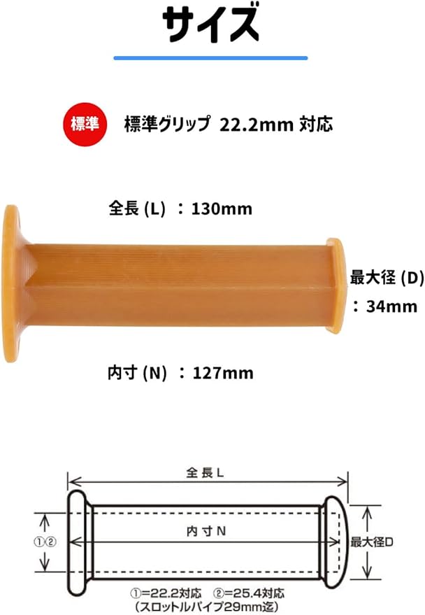 キジマ(Kijima) バイクパーツ グリップ 六角(ヘキサゴン) ラバー製 130mm φ22.2mm 非貫通タイプ 汎用 生ゴム 201-191
