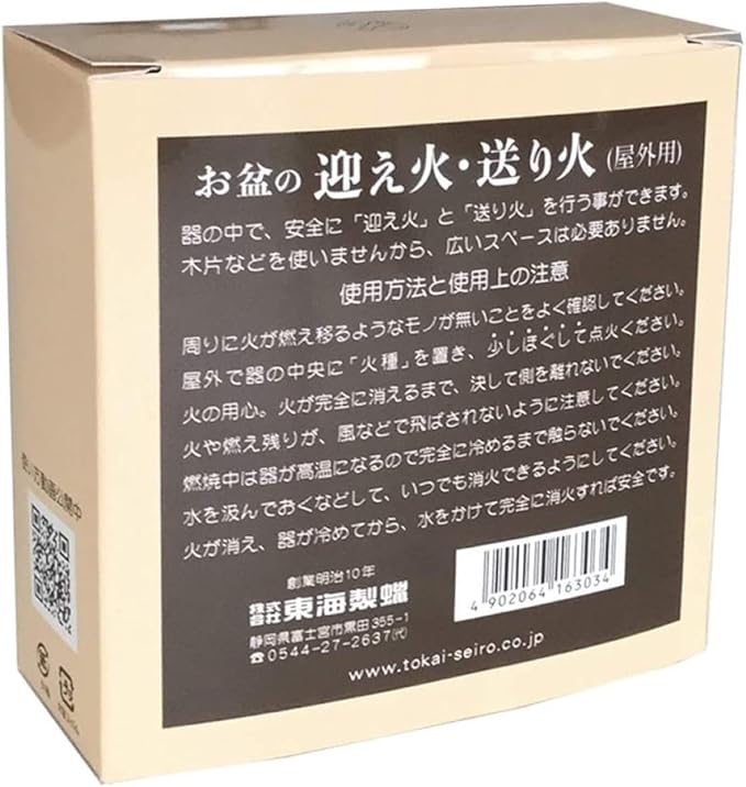 器とロウ糸とマッチ、送り火・迎え火を灯すのに必要なものがすべてセット, 現代のライフスタイルにあった、新しい迎え火・送り火, どこでも使えるコンパクトさは使う場所を選びません。, 燃焼時間は約3~5分, 安心の日本国内製