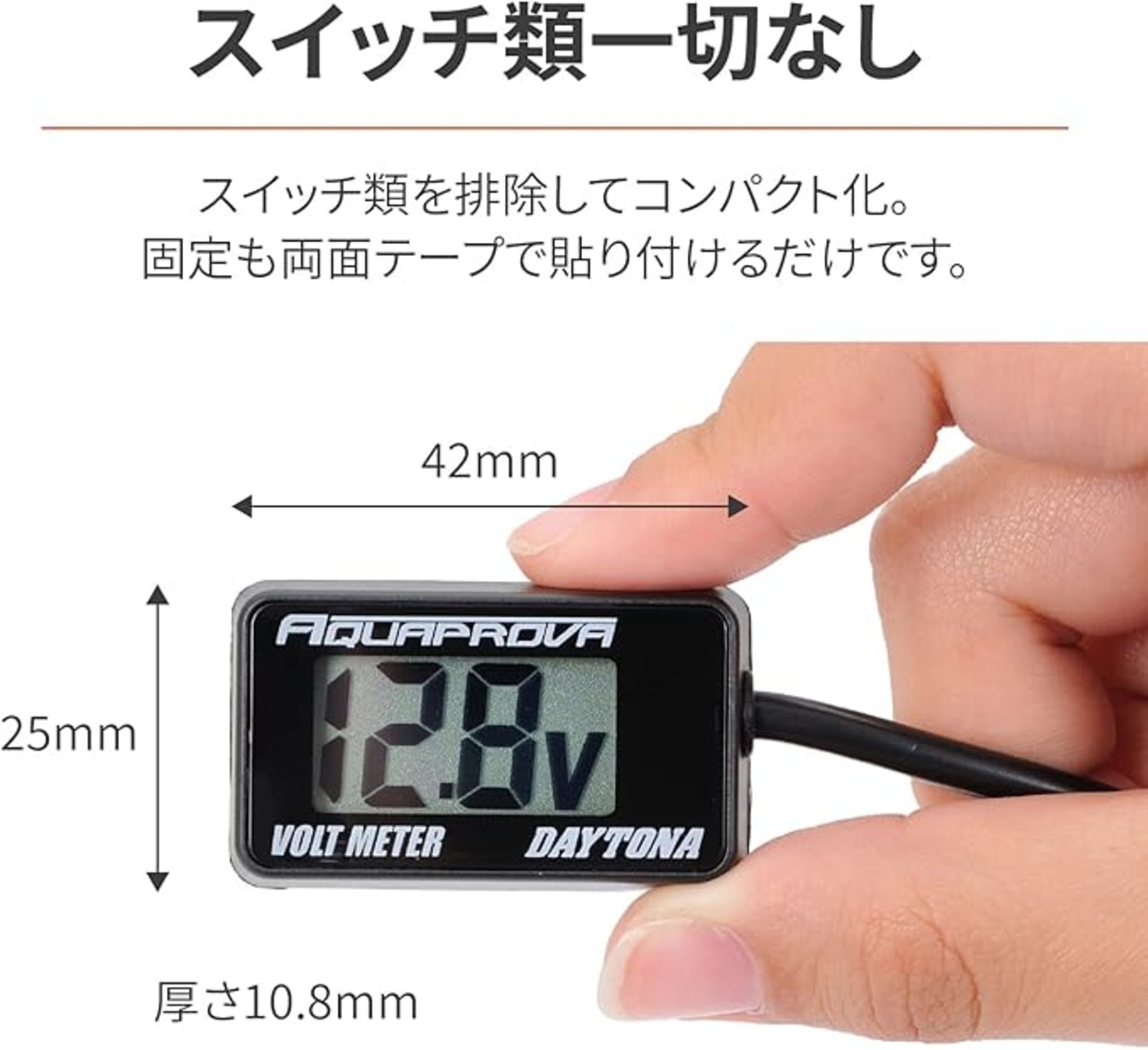 デイトナ(Daytona) AQUAPROVA (アクアプローバ) バイク用 電圧計 デジタル 防水 バックライト コンパクト ボルトメーター 92386