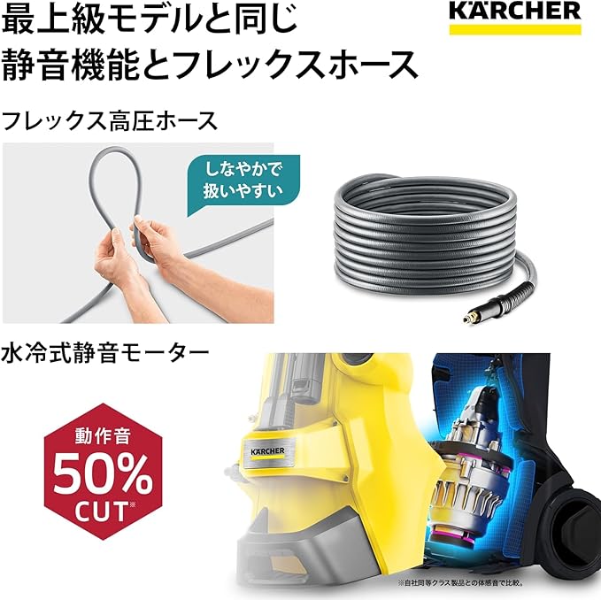 K 4 プレミアム サイレントは、静音と信頼の証「水冷式モーター」を採用した高圧洗浄機です。