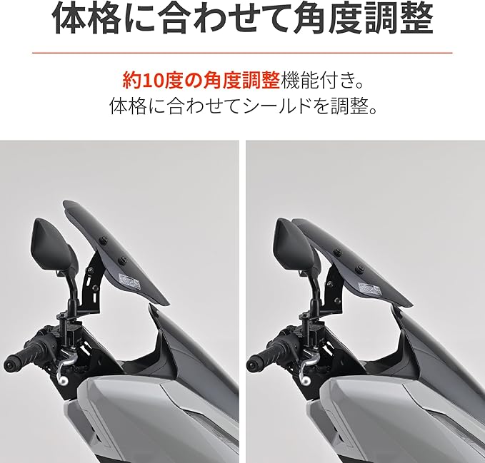 三次元立体成型シールドで、特性に応じた車種専用設計 / 約10度の角度調整可能