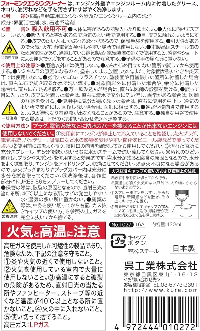 KURE(呉工業) フォーミングエンジンクリーナー 420ml エンジンルームクリーナー 1027