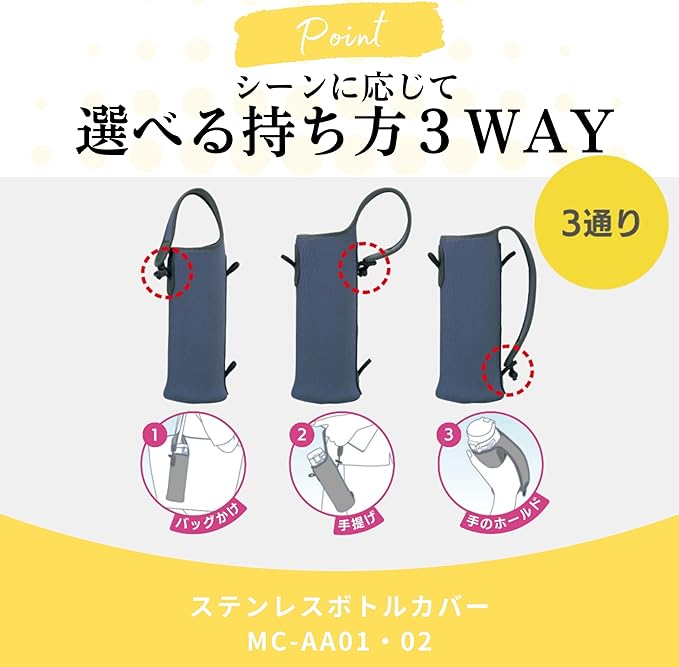 象印マホービン 水筒カバー Mサイズ(480ml用)持ち方3WAY ストレッチ素材 洗濯機洗いOK ステンレスボトルカバー ベージュ MC-AA02-CA