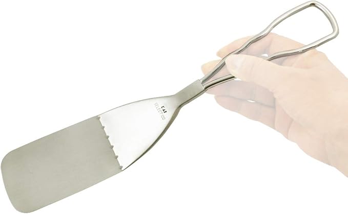 食材を返すだけではなく、身が縮んで反りかえりやすい食材(肉や魚)を押さえるのにも便利なターナー
