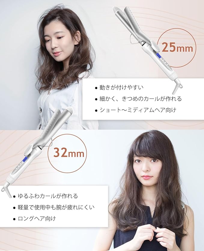 商品特長 自由自在にカールを作る/立ち上がりが早い/100℃~220℃ 25段階温度調節可能/全髪質対応/セラミックコーディング加工/AC100-240V対応 海外対応