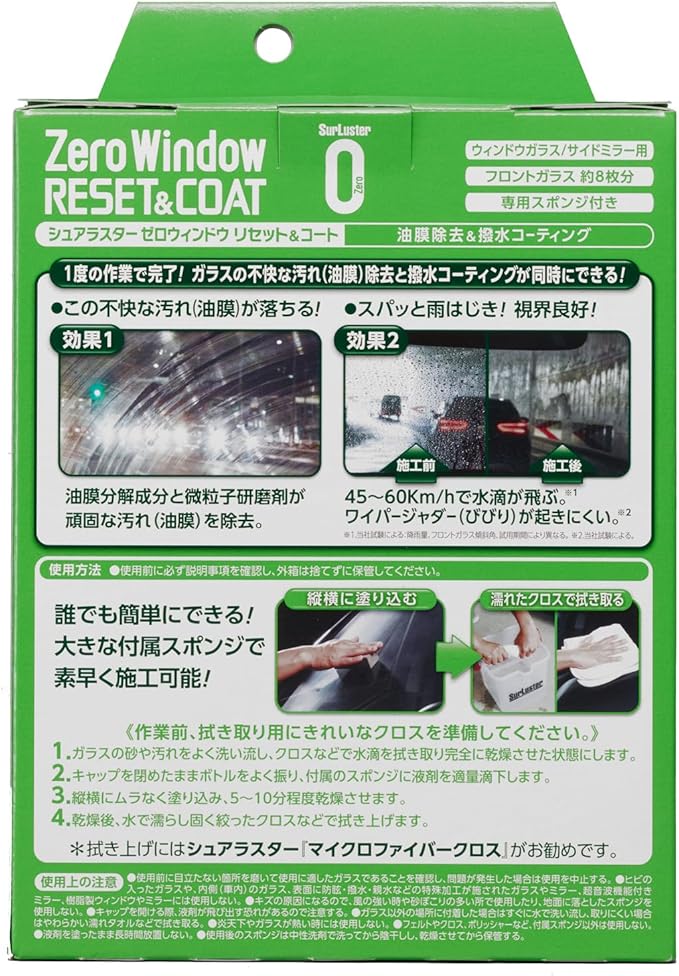 SurLuster(シュアラスター) ゼロウィンドウ リセット&コート 油膜 クリーナー 撥水 コーティング 塗りこみタイプ ガラス撥水剤 窓 フロントガラス サイドミラー 付属スポンジ付き 洗車 S-131