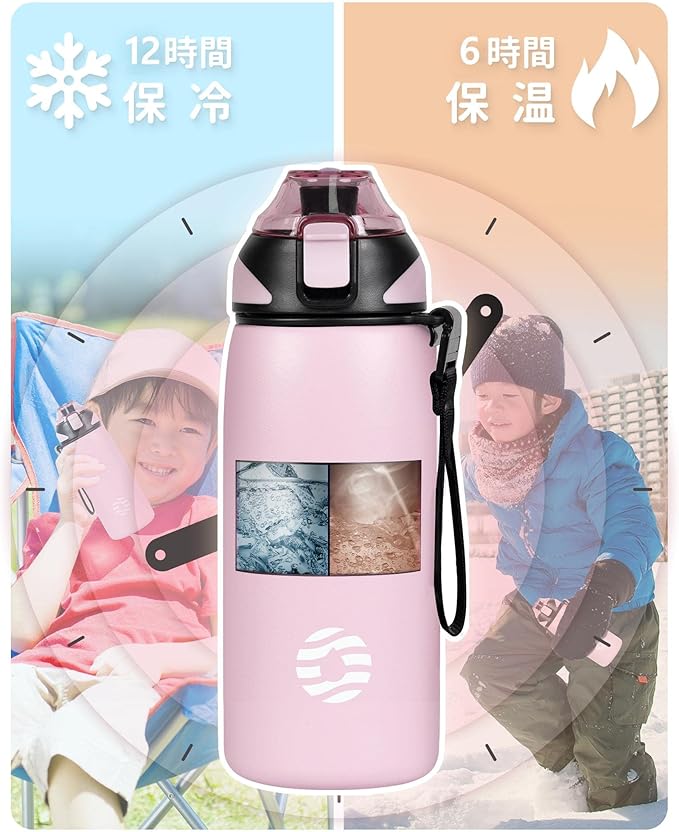 【抜群の保温・保冷効果】保温効力:63度以上(6時間)/保冷効力:11度以下(12時間)。保冷・保温に優れた真空断熱二重構造の水筒なので飲みごろ温度を長く楽しめます。シンプルな3色から選べる、男の子&女の子両方も適用です。水筒を120度以上傾けて使用しないてください。むせてしまうことがあります。