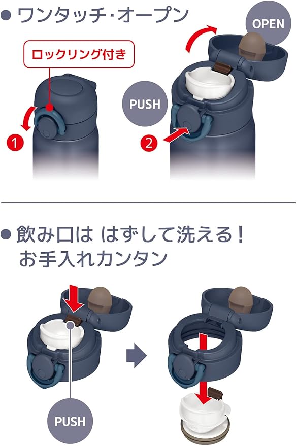 ●ワンタッチ・オープンで片手でも扱いやすいケータイマグ。丸みのあるフォルムが特徴。
