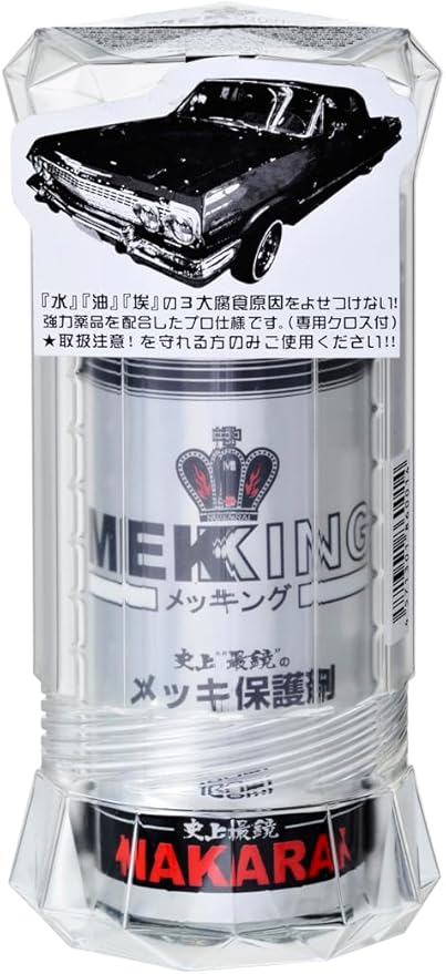 メッキングは、メッキ被膜の上にさらに強力な被膜を作る事で、サビの原因となる穴をふさぎ、しっかり保護するという発想のものです。また、表面にガラス被膜を形成するので、くすみもなく美しい輝きを放つクロームメッキの状態を保つ事が出来るのです。■耐熱200℃(完全硬化後) ・バイクマフラーには使用できますが、エキパイの根元15㎝の金属がいぶされて、変色する箇所は使用不可。■バイクエンジンメッキカバーにも使用可能 ■樹脂クロムメッキパーツにも使用可能 ■欧州車のベンツ等のアルマイトモールにも使用可能 ■その他、メッキ・金属全般なら使用可能(金メッキ、銀メッキ、亜鉛メッキ、クロメート処理、ユニクロ処理、金、銀、スズ、真鍮、無電解ニッケルメッキ等) ■精密部品の金属部分にも使用可能 ※※※■クロムメッキパーツ以外に使用される場合は、クロム光沢剤を配合してるので、全体に青光りが増しますので、必ず目立たない箇所で試されて上、自己責任でご使用ください。※※※デザインがバイク・車・トラック用とありますが、中身は一緒です(デザインの希望は選べません)