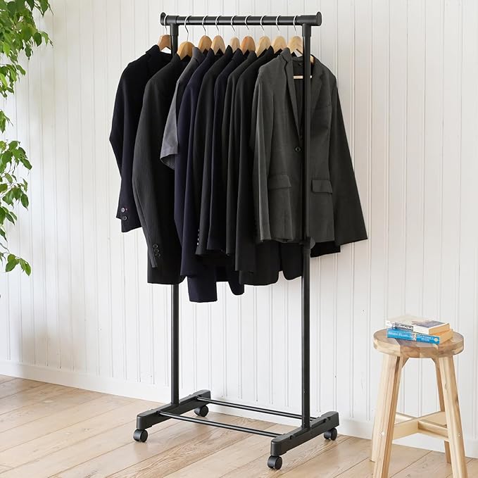 山善(YAMAZEN) ハンガーラック スリム キャスター付き 縦伸縮 シングル 幅60.5 奥行42.5 高さ89.5-147cm 組立品 一人暮らし オールブラック MKS-SLIMC(ABK) キッズ