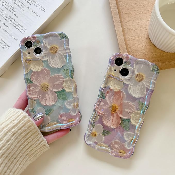 【花柄デザイン ▪ フィット感】背面にカラフルな油絵の花柄、色味が優しく、いつものスマホに上品さをプラス。側面が透明なデザインからiPhone 14カラーが見えるデザインで、本来の美しさと高級感をそのままに映り出し。