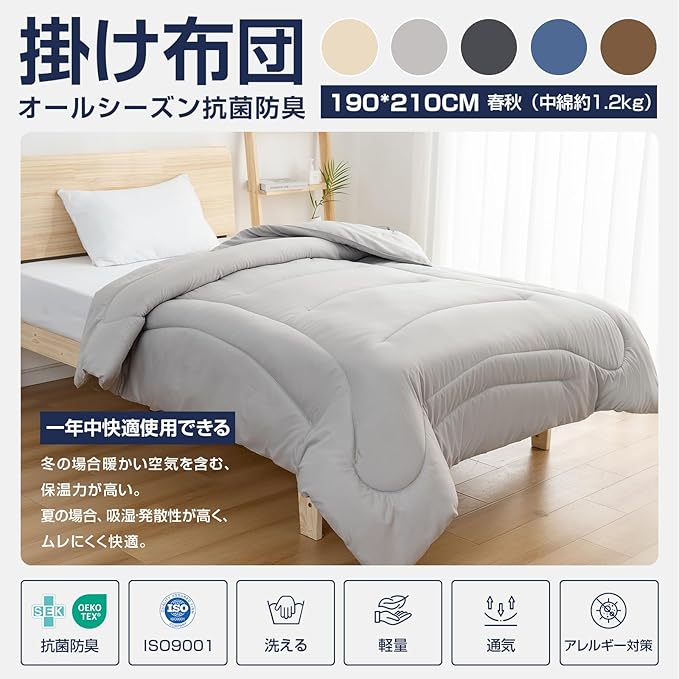 【商品仕様】掛け布団サイズ:約190x210cm 側生地:ポリエステル100% 詰め物:中空ポリエステル綿100% 軽くて持ち運びも簡単、季節を問わず長く使える掛け布団です。【品質保証】お客様の満足を第一に、高品質のカスタマーサービスをご提供しますので、品質に問題がございましたらお気軽に当店までご連絡ください。