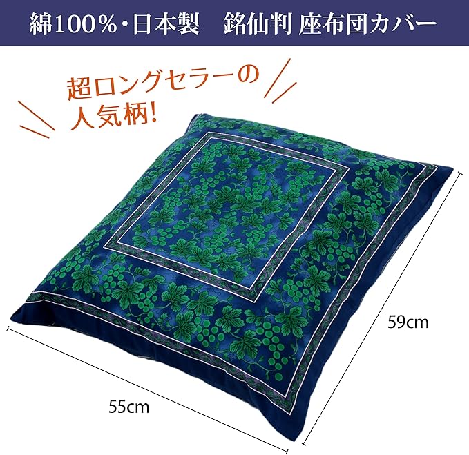nishikawa 【 西川 】座布団カバー 銘仙判(55X59cm) 洗える 緑彩葡萄絵柄 日本製 ブルー PG02083096