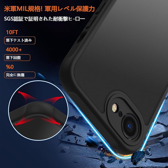 【高耐衝撃性・カメラ保護】免震構造である高弾力バンパーと耐震構造である丈夫なポリカーボネート背面で組み合わせて、バランスが良く落下衝撃を本体に伝えにくくなる。隆起エッジにより、スマホを置いた時にスクリーンやカメラが擦れにくくなり、傷から保護することができます。