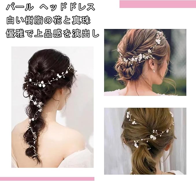 【高品質材料】 髪飾りは良質な合金と樹脂材料を採用し、精密加工を経て、製品の堅牢性と耐久性を確保した。特殊な巻き付け技術により、真珠や装飾品がより強固になり、脱落しにくくなります。