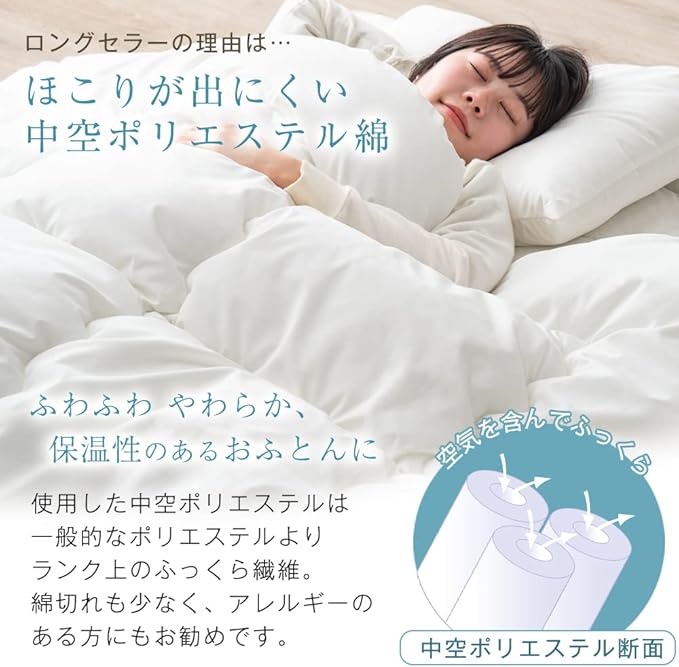 【掛け布団】サイズ:幅150x長さ210cm ループ数:6ヶ所 生地:ポリエステル100% 詰め物:ポリエステル100% [詰め物重量]約1.5kg