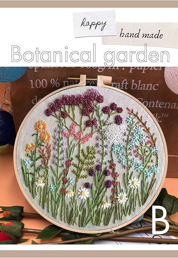 [ママゆるり] フランス刺繍キット2個セット 日本語取り扱い説明書 ステッチ説明付 刺繍糸 刺繍枠 図案クロス付 (ボタニカルガーデンⅠ)