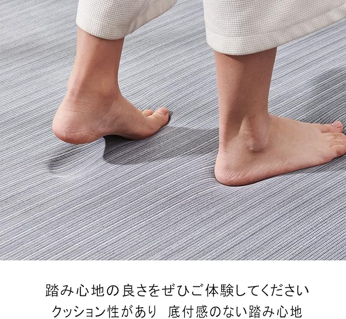 【高反発・分散体圧】接触冷感ラグの内素材は、厚さ約10mmの高密度高反発ポリウレタンを使用し、高反発を実現しています。夏用カーペットパッドとして、地面に密着した感覚でリフレッシュタイムにぴったり!