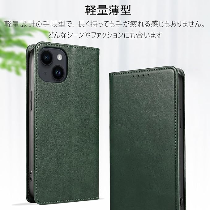 【KWATUNG】iphone 15 ケース 手帳型 レザー アイフォン15ケース 手帳型 軽量 薄型 マグネット式 iphone15ケース手帳型 カード収納 スタンド機能 iphone 15 手帳型 ケース 衝撃吸収 落ち着いた色 iphone 15 スマホケース アイフォン15手帳型ケース 放熱性 折りたたみ 6.1インチ【グリーン】