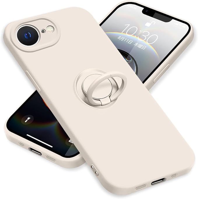 ZHUAZHULE ケース 用の iPhone16e アイフォン16e スマホケース リング付き シリコン スタンド機能 カバー 耐衝撃 レンズ保護 360 回転 車載ホルダー ストラップホール付き 滑り止め 指紋防止 薄型 (オフホワイト)