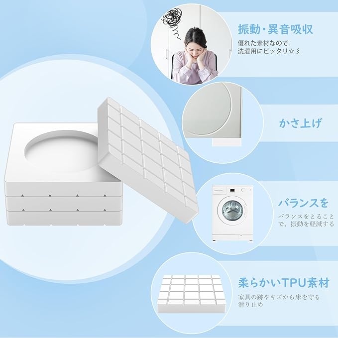 ☼【しっかり対応】裏返して使用可能で、ほとんどの洗濯機に対応可能。洗濯機、冷蔵庫など騒音や振動が気になる家電の脚下へ置くだけでカンタンに防振・防音・防傷効果が得られますよ。かさ上げ台や置き台との同時使用により一層の効果も期待出来ますよ。