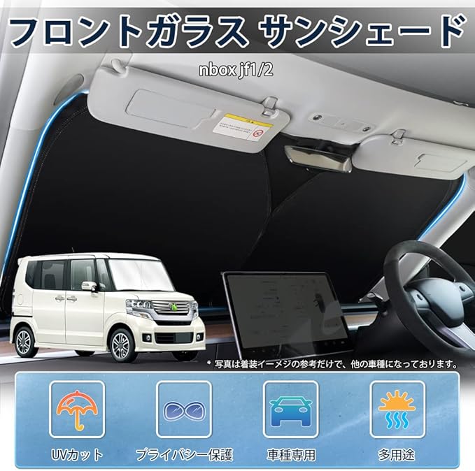 LIMSTYLE ホンダ N-BOX JF1 JF2 フロントガラス用 サンシェード n box マルチサンシェードエヌボックス 遮光 断熱 シェード カーテン H23.10~R2.2 日除け UVカット 車中泊 しなやか スポーティ タイプ ドット柄 収納袋付 アクセサリー 内装パーツ 車種専用 HOT直営 取付簡単