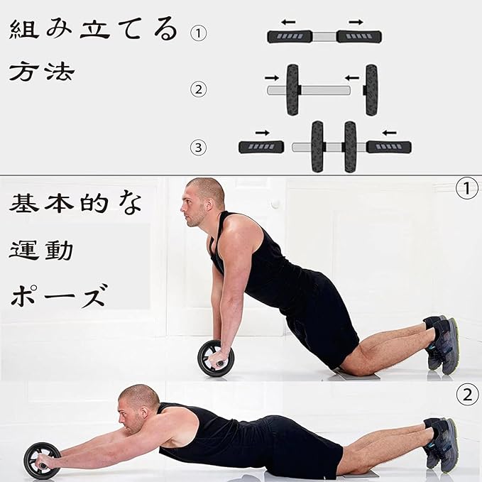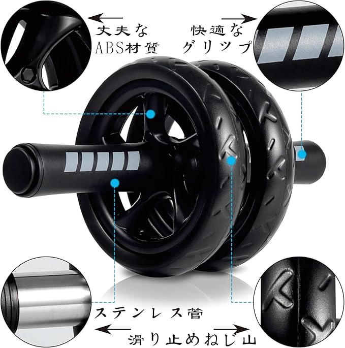 腹筋ローラー 腹部コア運動機器 静音 アブローラー スリムトレーナー アブホイール 上半身筋トレ 膝保護マット付き 耐荷重200kg