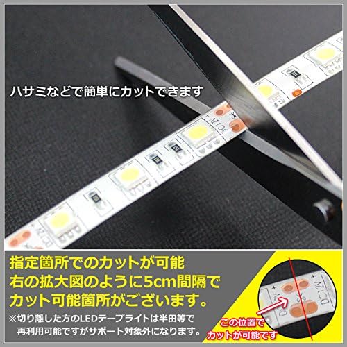 【製品仕様】入力電圧:DC12V/消費電流の目安:1mあたり約1A(ロットや色により異なります)/SMDタイプ:5050/SMD個数:5cmごとに3個/防水性能:表面防水処理(水中や大量の水がかかる環境は非対応)/ケーブルの長さ:約12cm/極性:赤線(プラス)黒線(マイナス)