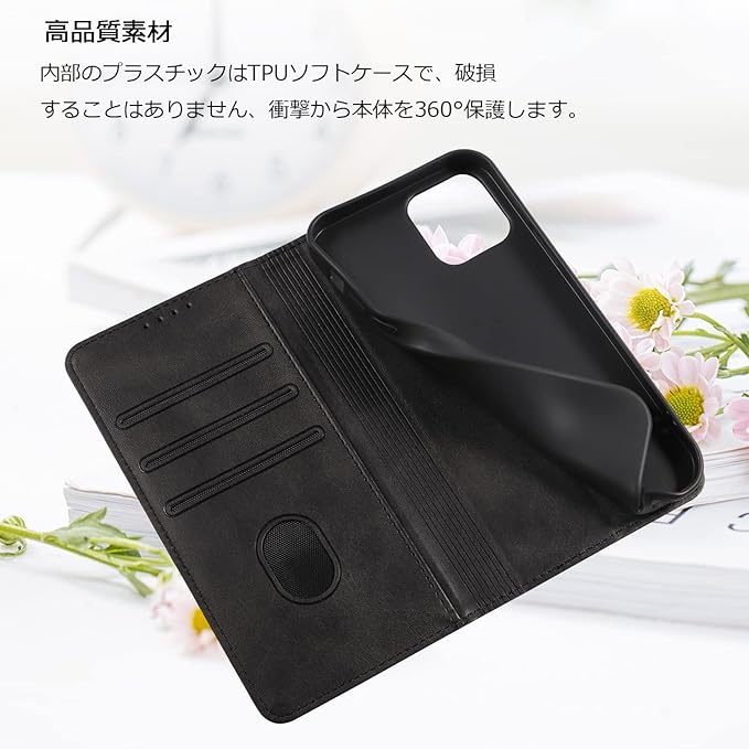 iPhone12 ケース iPhone 12 PRO ケース イフォン12/12 PRO ケース スマホケース 手帳型 携帯カバー レザー 耐衝撃 軽量 着脱しやすい 放熱性 マグネット式 カード収納 スタンド機能360度保護 PinLiSheng (ブラック, iphone12/12pro)