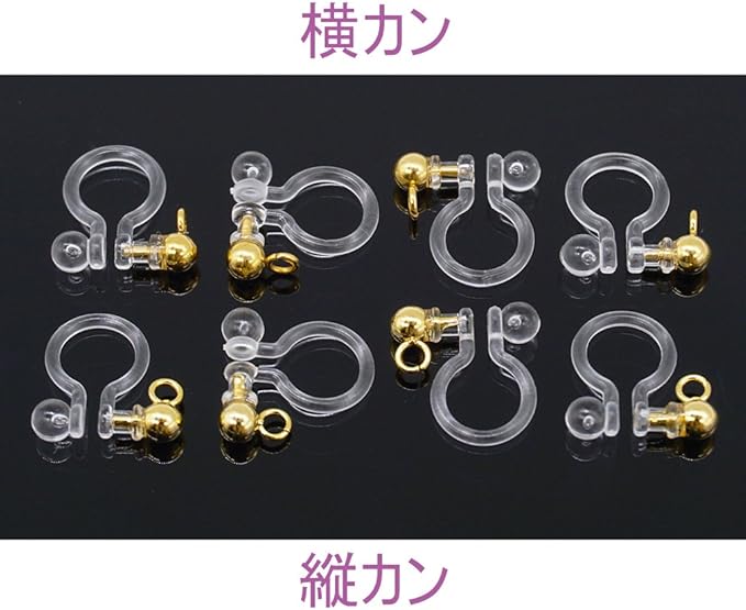 素材:樹脂、ステンレス 色:クリア(透明)、ゴールド 数量:横カン(5ペア10個)、縦カン(5ペア10個) サイズ:画像をご参考ください