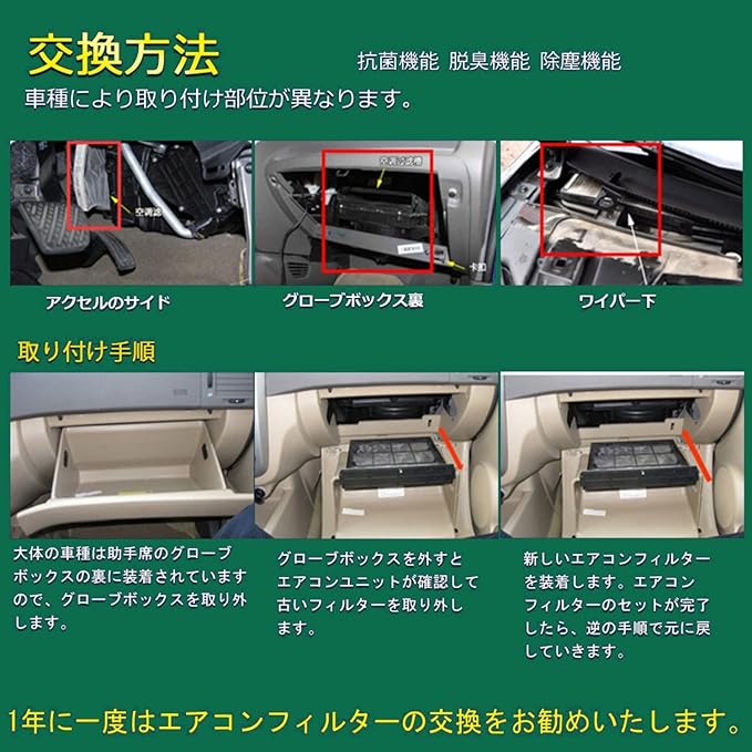 【高品質活性炭】渋滞時などに気になる排ガス臭(アセトアルデヒド)を、エアコンフィルターの活性炭が吸い取ります。車外から侵入するイヤなニオイをカットし、同乗者も快適です。