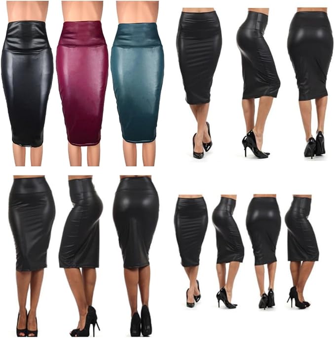[Getrays] レディース PU スカート、ハイウエスト ボディコン ペンシル ミディ スカート、ブラック フェイクレザー ラップ オフィス スカート、伸縮性のあるカジュアル スリム ヒップラップ ペンシル ドレス