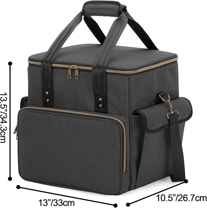 【大容量のレコードバッグ】サイズ:33*26.7*34.3cm。レコードケースは7/ 10/12インチの約60枚のレコードを収納できます。フロントポケットと2つのサイドポーチがあり、7インチのレコードを数枚収納できます。あるいはアクセサリーとクリーニング用品を収納できます。