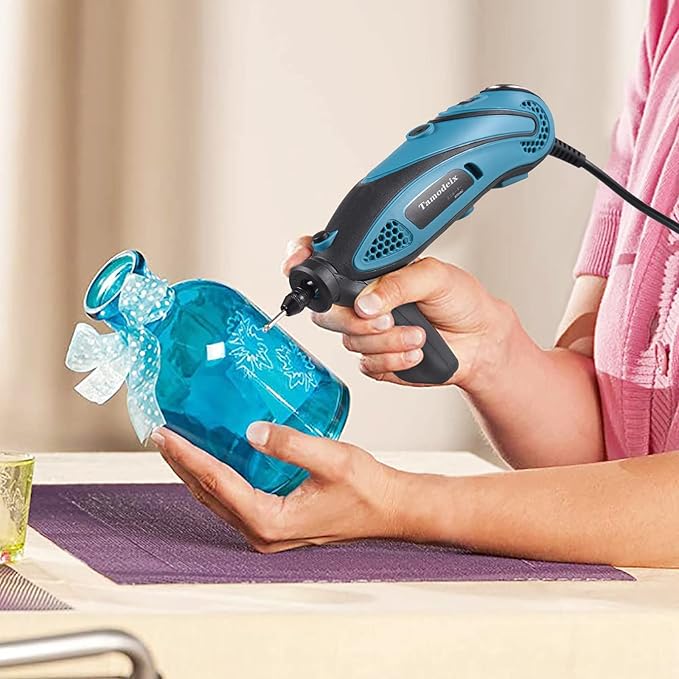 【4つのアタッチメント付属】フレックスシャフト、ディテーラーグリップ、シールドアタッチメント、カッティングガイド、アタッチメントが付属されており、狭い箇所での作業・火花が出る作業・正確な作業などの場面で活躍します。ガラスエッチングやレザー加工、つや出し等様々な用途に使用可能。