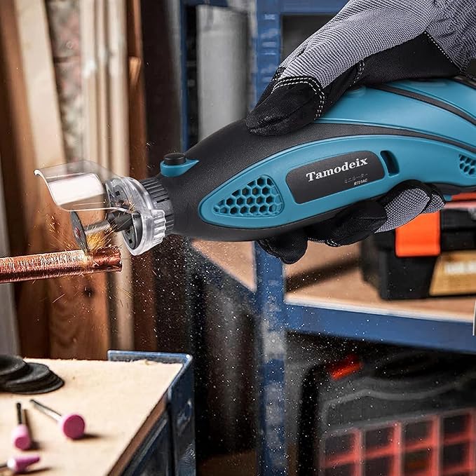 ミニルーター 三つ爪チャック リューター 無段階変速 最大32,000回転/分 107ピース入り 保護カバー 補助ハンドル ケース付き 日本語取扱説明書付き