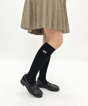 ワンポイント刺繍が入った38cm丈のしっかり長さがあるスクールハイソックスです。
