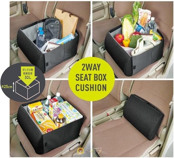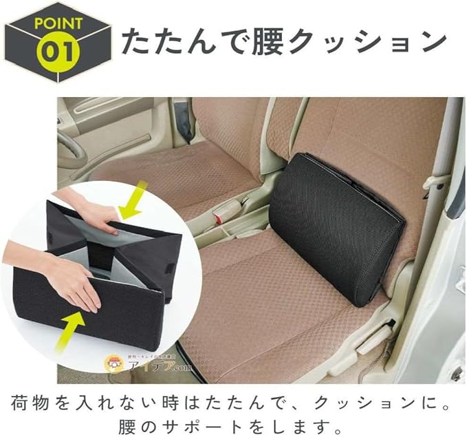 コジット 畳んで車のシートのクッション 広げて荷物入れ 荷物の転落防止! シートボックス腰クッション ブラック