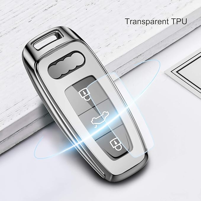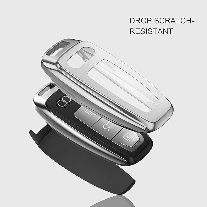[OATSBASF]アウディに適したキーカバー高級TPU防汚傷対応アウディA6L A7 A8 Q7 Q8専用スタイリッシュスマートリモコンキーカバー D-シルバー