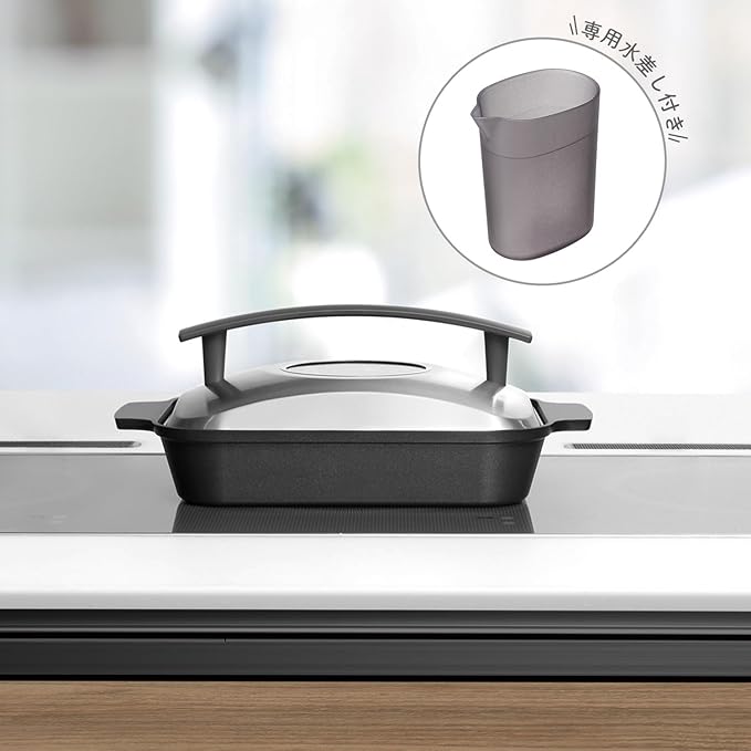 ●蒸して焼ける魚焼き、お肉もヘルシーに焼き上げる。●「蒸す 焼く」でヘルシーに時短で焼き上げる魚焼きロースター。●本体のウォーターポケットに水を入れて、高温の蒸気で食材を包み込み、ふっくらとやわらかい食感に仕上がります。●魚だけでなく、お肉、野菜、お餅などさまざまな食材を調理できます。●IH200V・100V、ガスなど様々な熱源で使用できます。●蓋は左右どちらでも立てて置けるので調理スペースを有効に使えます。●焦げや傷がつきにくくお手入れしやすいフッ素コーティングを施しました。●IHやガスなどの様々な熱源に対応 ※海外製IHクッキングヒーターでは使用できない機種もあります。