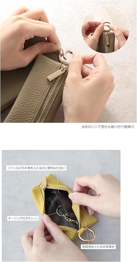 車のスマートキーだけでなく、家のカギや小銭などの小物類も収納できるキーケース。 ファスナー付きだから、落とす心配もなし! 付け外しがしやすいやわらかいリング。 指や爪が傷つきやすいリングの付け替えも、細身のリングなので強い力は必要なし! スマートキーや鍵の付け外しも簡単! 高級感あふれる本革素材で思わず持ち運びたくなるアイテム。 カラー展開は全8カラー。男女問わず使用いただけるアイテムです。