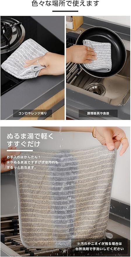 ✅【洗剤いらず!】水だけで油汚れをキレイに落とせる魔法のクロス!ソースなどでついた汚れもしっかり落とします。
