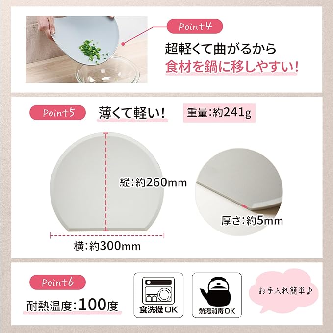 超軽くて曲がるので食材を移しやすい!もちろんそのままお皿として利用もOK